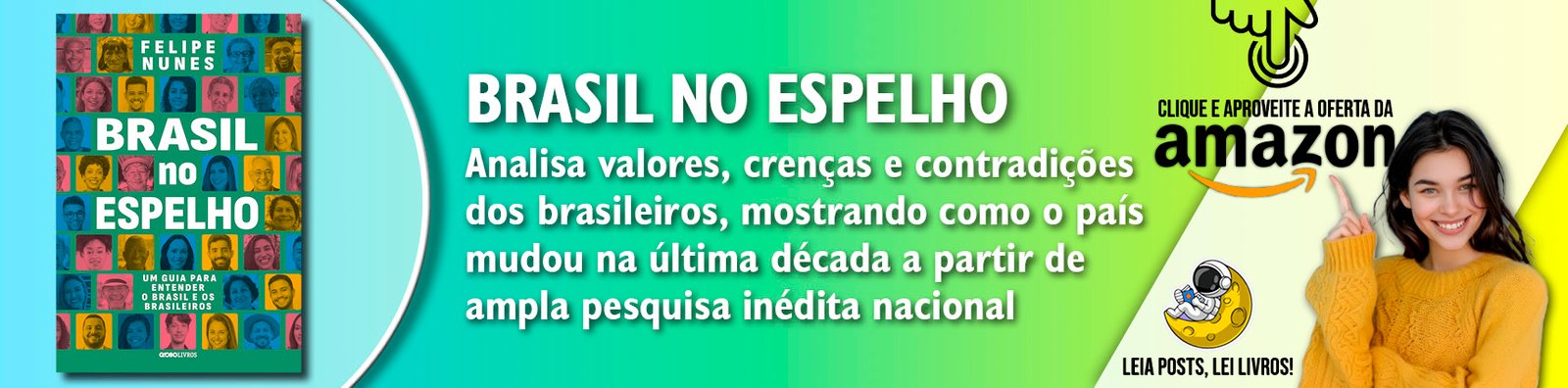 “Este não é um livro sobre o que eu acho que é o Brasil ou como ele deveria ser. É um espelho objetivo sobre o Brasil que capturamos por meio da maior pesquisa já feita no país sobre os valores e atitudes dos brasileiros. O livro revela em detalhe que não há um único Brasil, há vários. Convivem aqui um país tão conservador quanto o Zimbábue e outro tão liberal quanto a Suécia — e é nessa tensão que vivemos”, afirma Felipe Nunes.