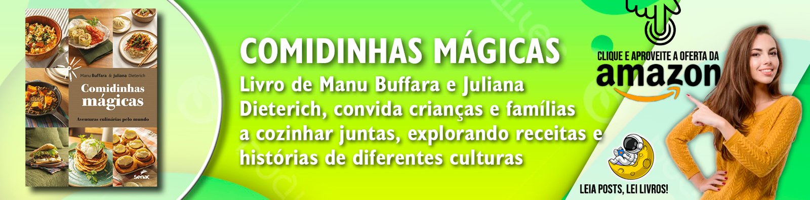Entre panelas, ingredientes e muita imaginação, “Comidinhas mágicas” transforma a cozinha em um território de descobertas. A obra propõe que crianças assumam o papel de protagonistas em receitas pensadas para serem preparadas em família, estimulando curiosidade, criatividade e momentos de convivência e diversão.