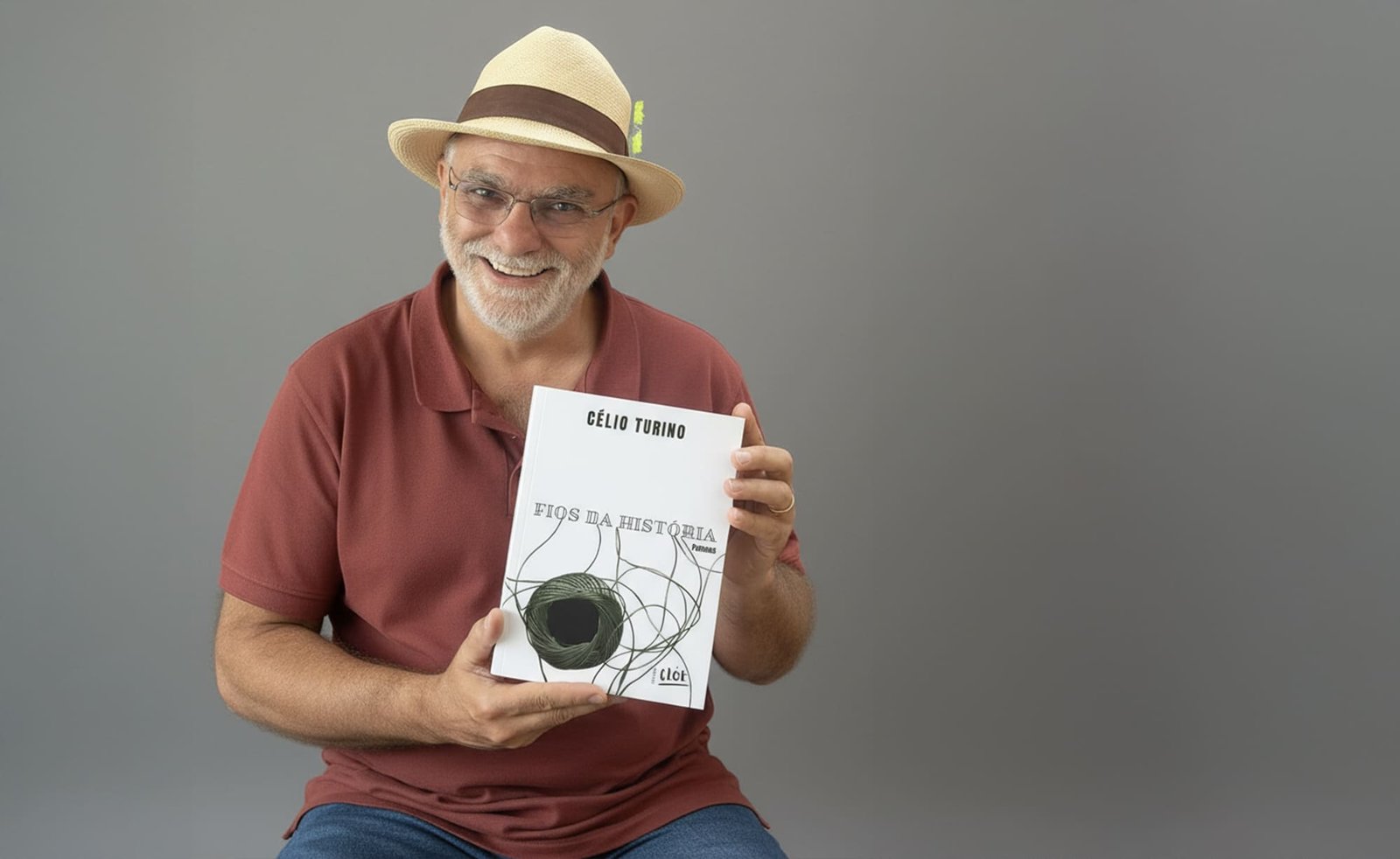 Fios da história, de Célio Turino (foto), explora a poesia como ferramenta histórica, abordando temas como política, memória e resistência através de versos críticos e profundos