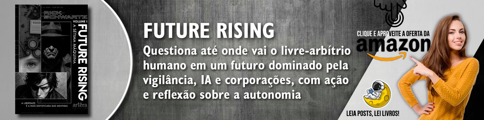 Em um mundo governado por sistemas invisíveis, decisões automatizadas e vigilância constante, a sensação de escolha pode ser apenas uma ilusão. É a partir desse cenário caótico (e cada vez mais familiar) que o escritor Rick Schwartz elabora o enredo de Future Rising: A Sétima Máquina, ficção científica que dialoga com questões atuais como o avanço da Inteligência Artificial, o poder das megacorporações e os limites da autonomia humana.