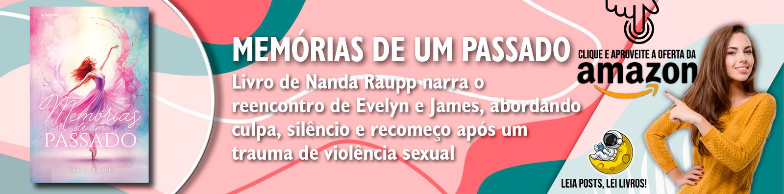 É diante desse cenário urgente e preocupante que nasce Memórias de um passado, romance que transforma a dor em palavras de cura. Escrito pela romancista Nanda Raupp, o livro narra a trajetória de Evelyn, uma bailarina marcada por abusos sexuais sofridos ainda na adolescência, e James, um ginecologista que carrega a culpa pela morte violenta da irmã, Kate, melhor amiga da protagonista. Unidos por esse mesmo trauma e separados por anos de silêncio, os dois se reencontram e são forçados a revisitar a noite que mudou definitivamente o curso de suas vidas, além de encarar verdades que permaneceram soterradas por mais de uma década.