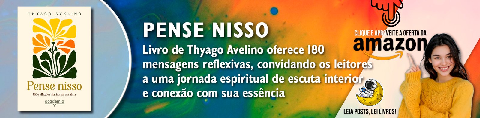 O escritor Thyago Avelino retorna às livrarias com o lançamento de Pense nisso, obra voltada à reflexão pessoal e ao fortalecimento da conexão interior. O livro reúne 180 mensagens que abordam temas como propósito, sensibilidade, escuta e autoconhecimento, convidando leitoras e leitores a perceberem com mais atenção os sinais da vida cotidiana. A proposta é estimular uma leitura consciente, que dialogue com as emoções e com a dimensão espiritual de forma respeitosa e acessível.